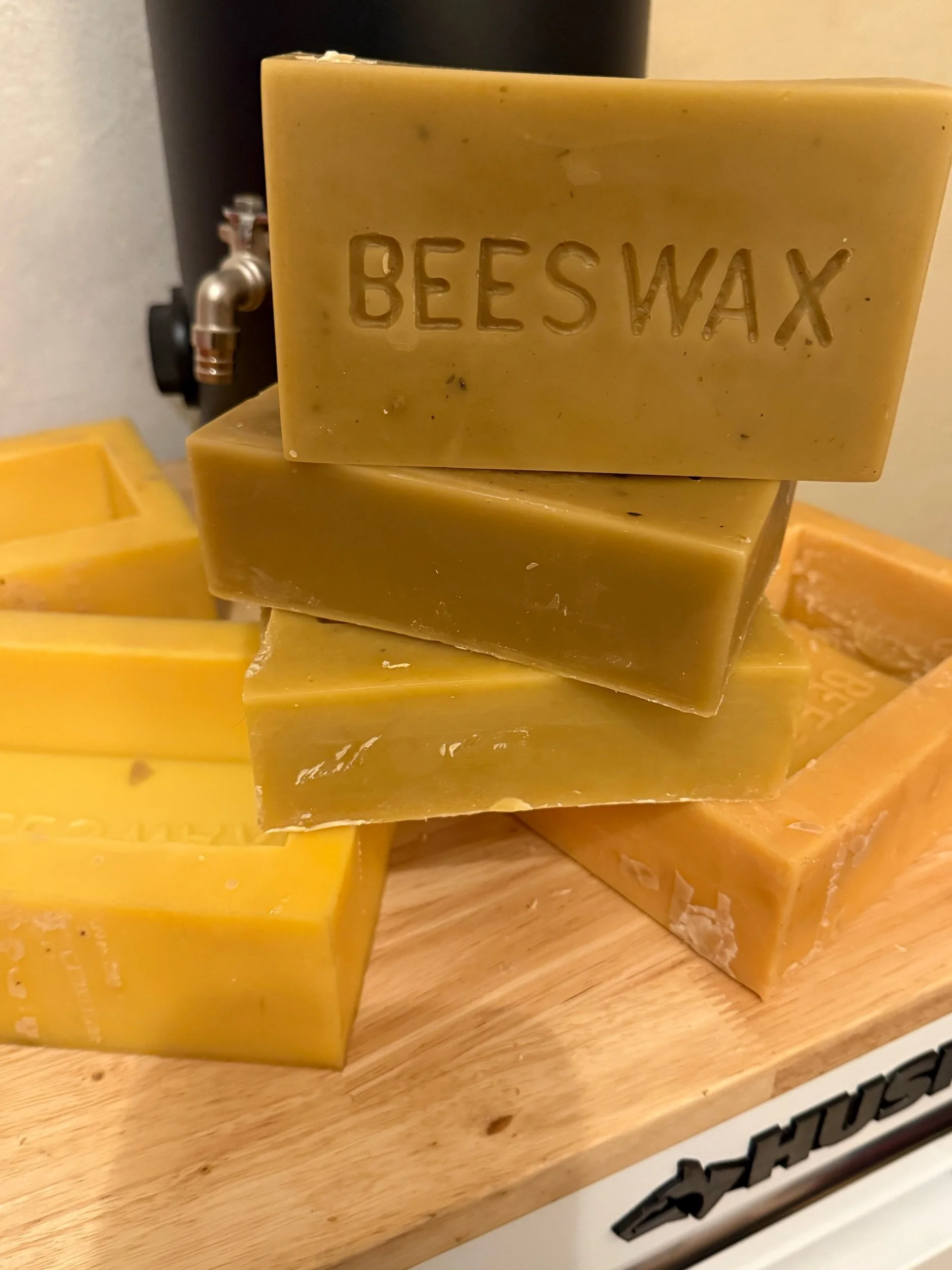 Pure organic beeswax straight from our rescued happy bees! NEVER bleached and only filtered once, sold in 1lb blocks. Perfect for making your own chapstick, candles, creams, + so much more!